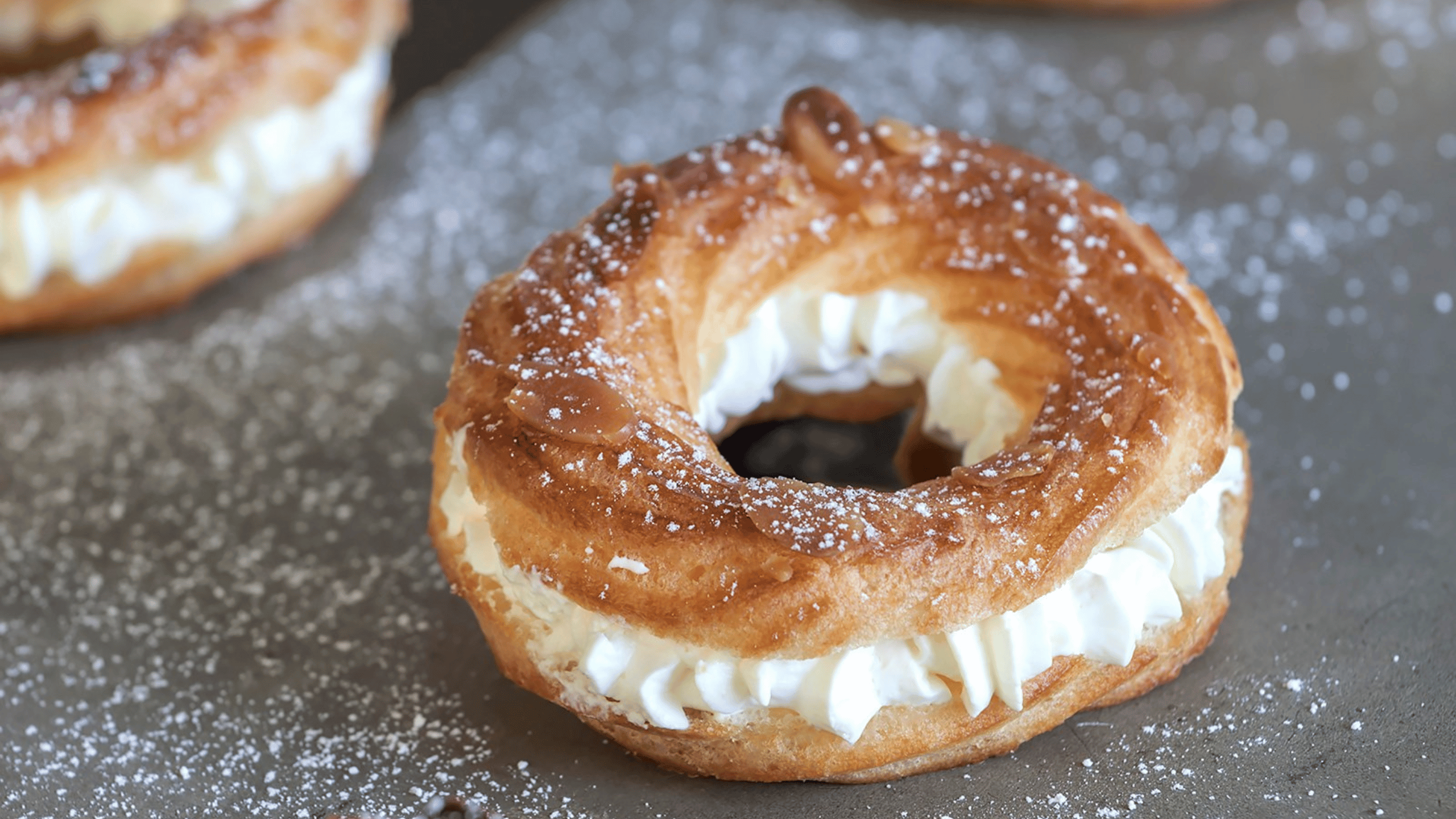 - Věnečky rozkroj, spodní část naplň krémem a přiklop vrškem. Podle chuti můžeš poprášit moučkovým cukrem.